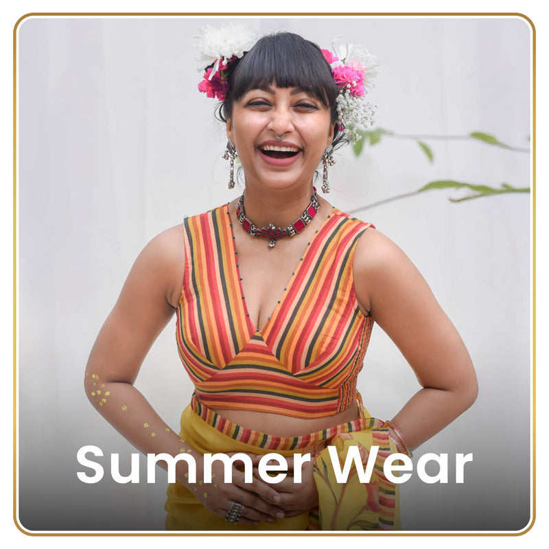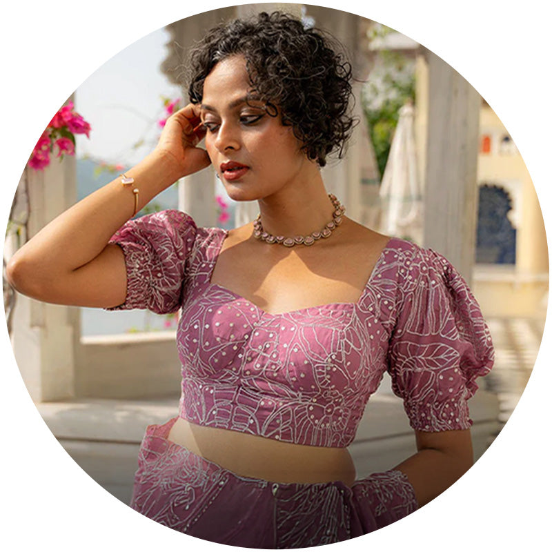i ordered a combo of pre pleated saree and the rosa blouse - bothare just perfect ! I wore it for the entire day - visit to Taj Mahal which requires a lot of walking - it was just so comfortable and looks absolutely gorgeousMansi g.Basic Rosa - Soft, Subtle and Stunning Floral BlouseThis blouse is the perfect blend of simplicity and elegance. ...