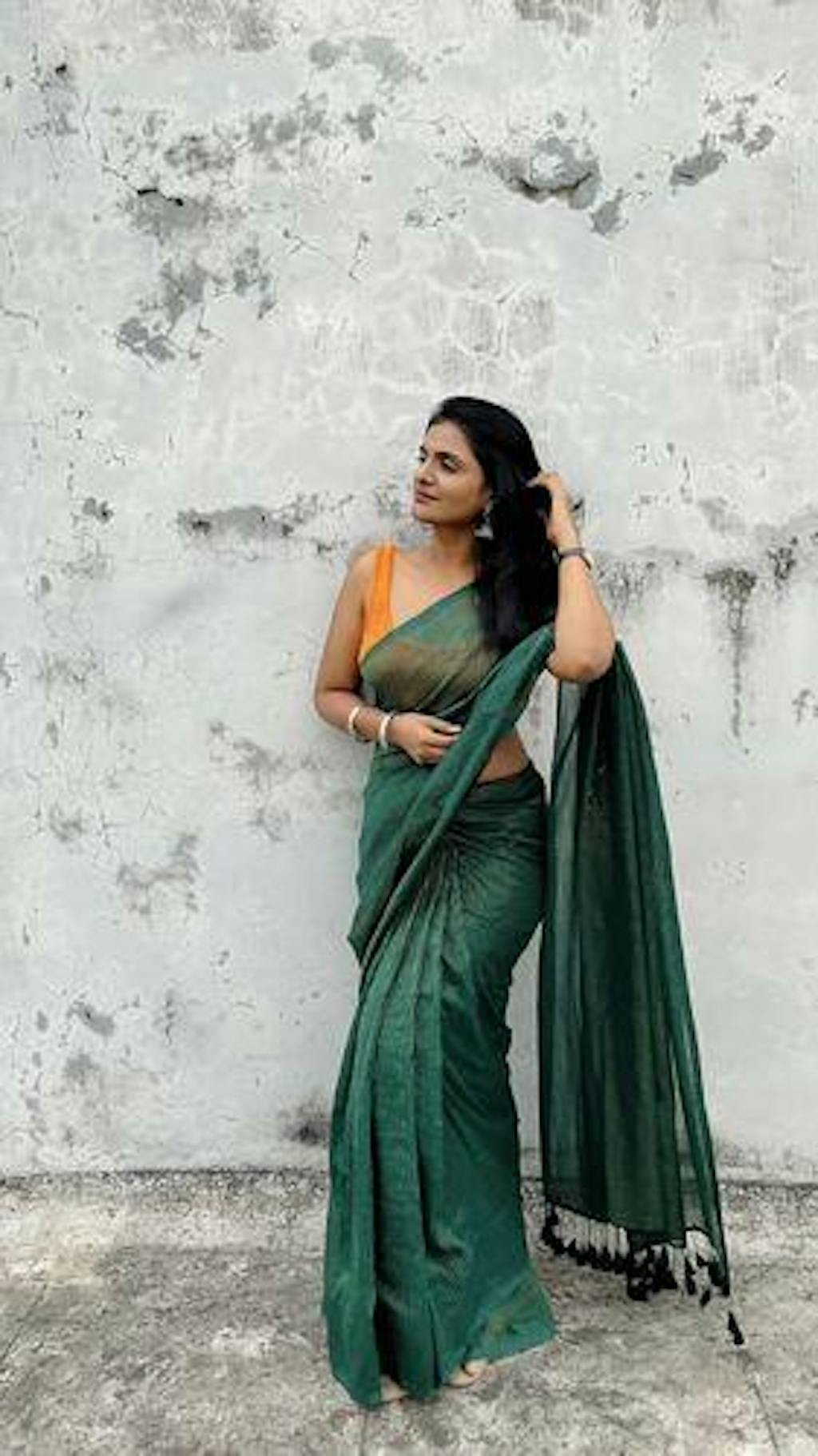 The zari threads add the golden shimmer to the fabric in a very subtle yet beautiful way.