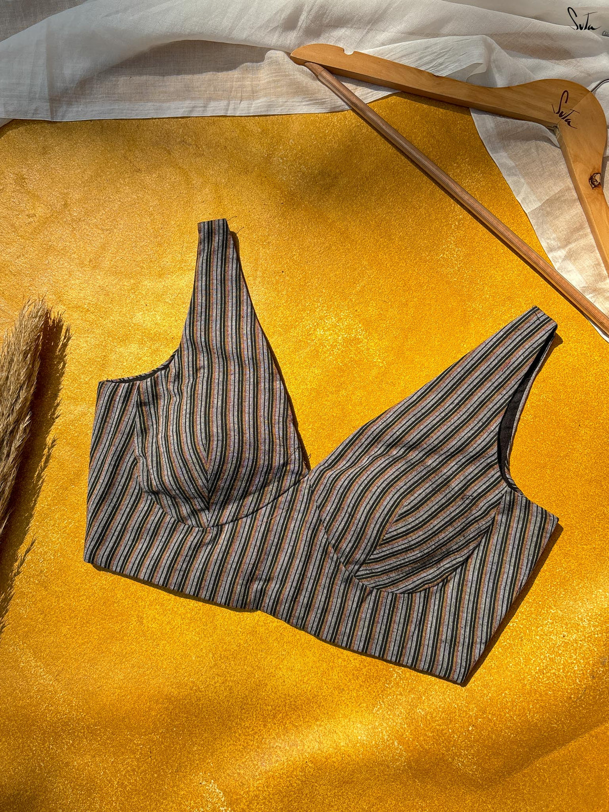 Grey V Neck Sleeveless Cotton Blouse with Back Hook