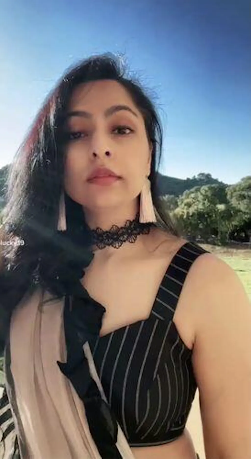 Su, the model is wearing size S blouse and saree is Besabar Dil.