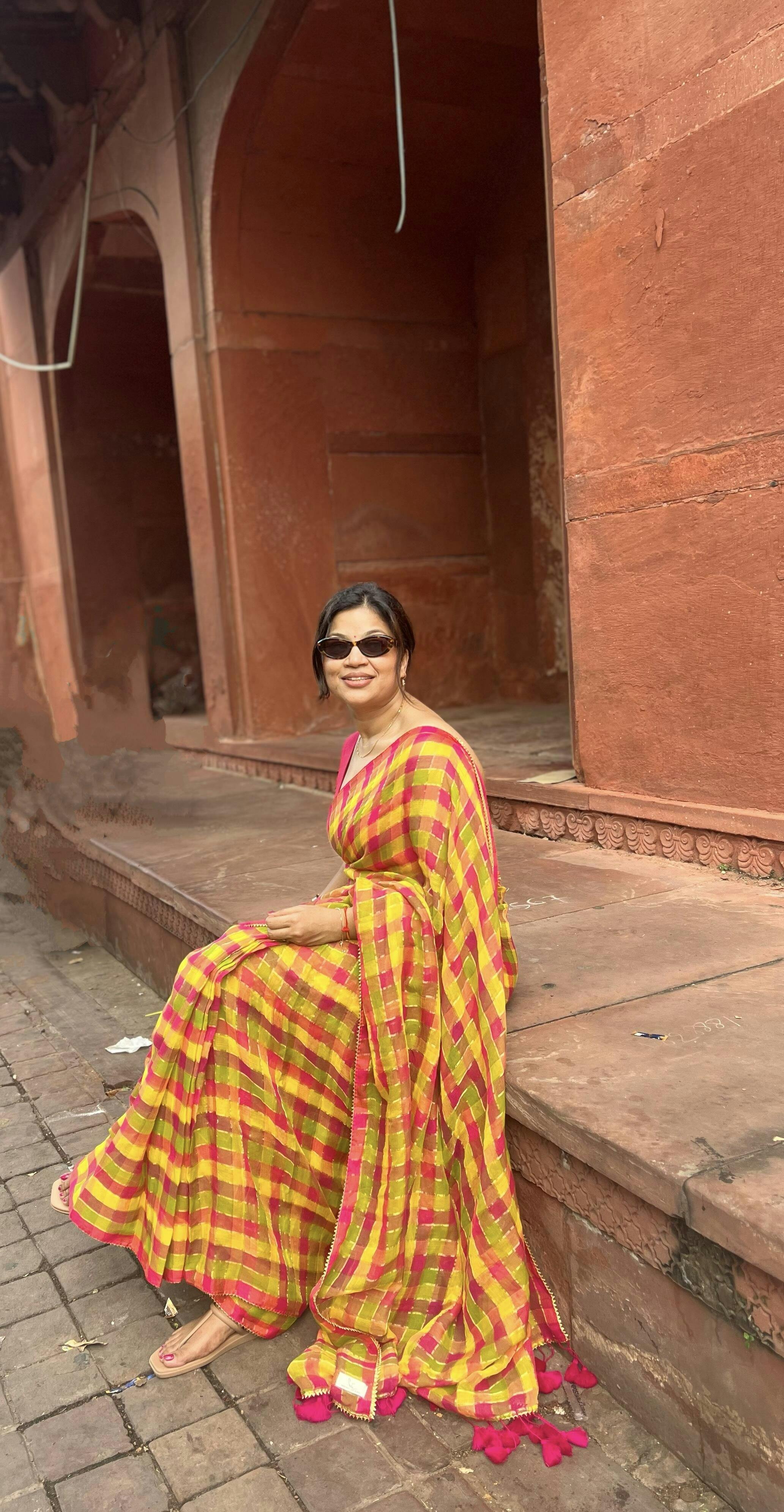 The word 'Chirmi' stands for 'seeds'. As the name suggests, this bold sleeveless blouse, featuring a blooming pink hue, is a testament to the playfulness of nature! Tailored to perfection and being a perfect fit for every event, the blouse ensures the utmost comfort and sophistication. Delve deep into the beauty of the art and artisans, with a blouse where love and patience poured into every stitch.
