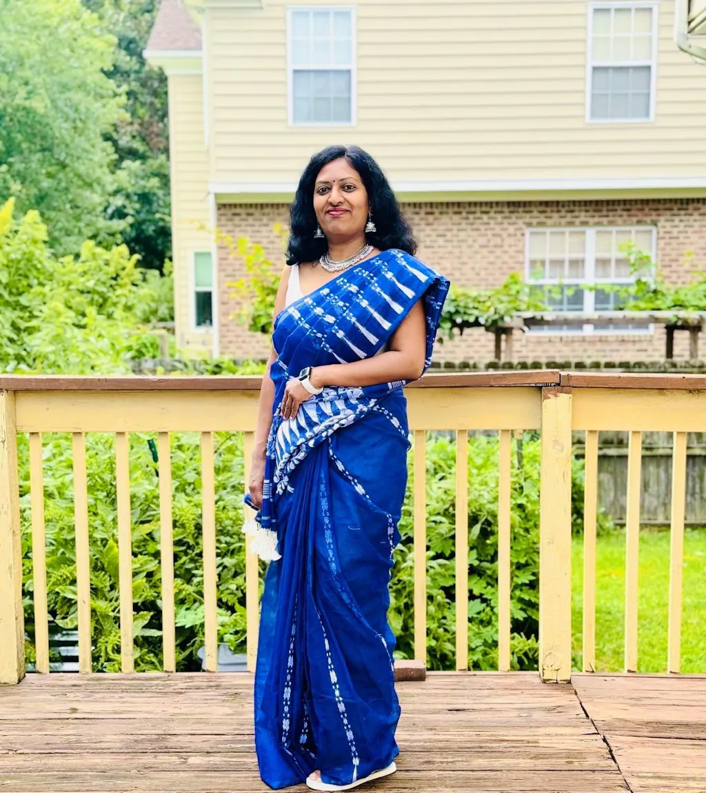 Su, the model is wearing size S blouse and the saree is Reindeer