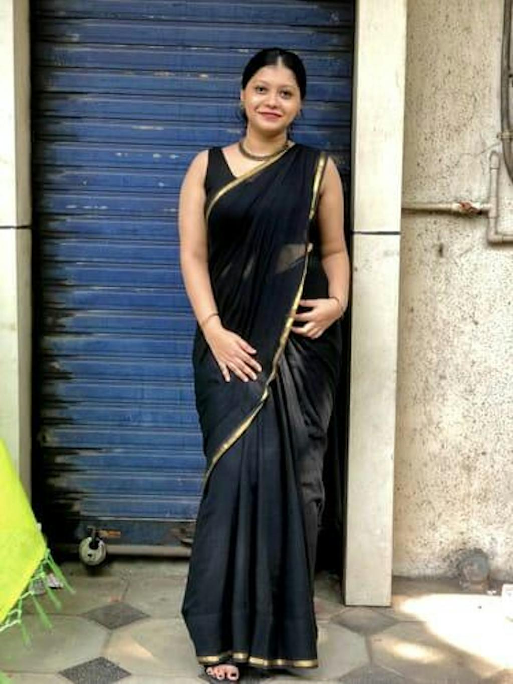 This unbelievably beautiful black and gold made-in-heaven mul saree is truly a treasure to own!