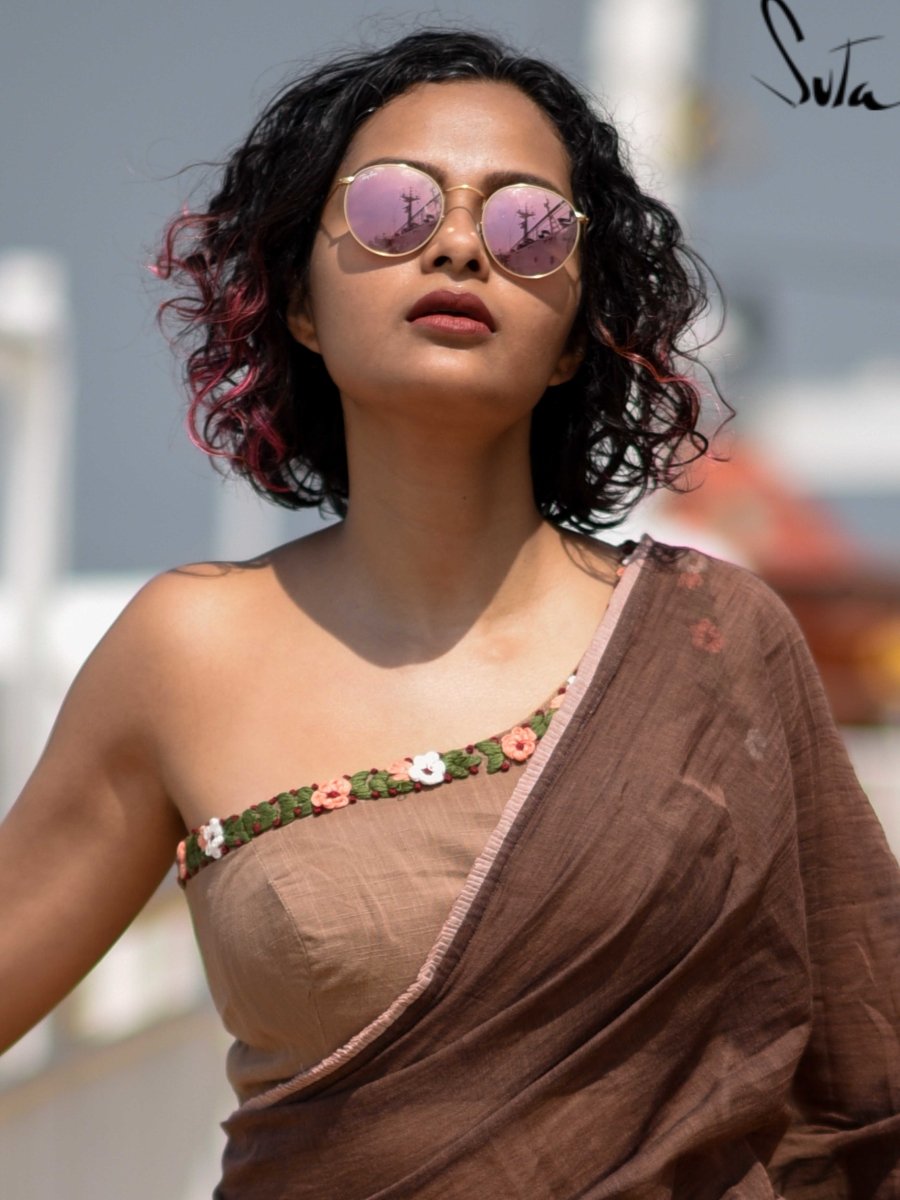 Su, the model is wearing size S blouse and saree is I am a Disco Dancer.