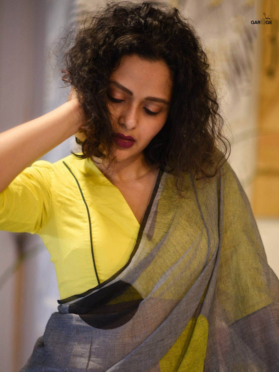 Su, the model is wearing size S blouse and the saree is Fireflies in the Garden Polka.