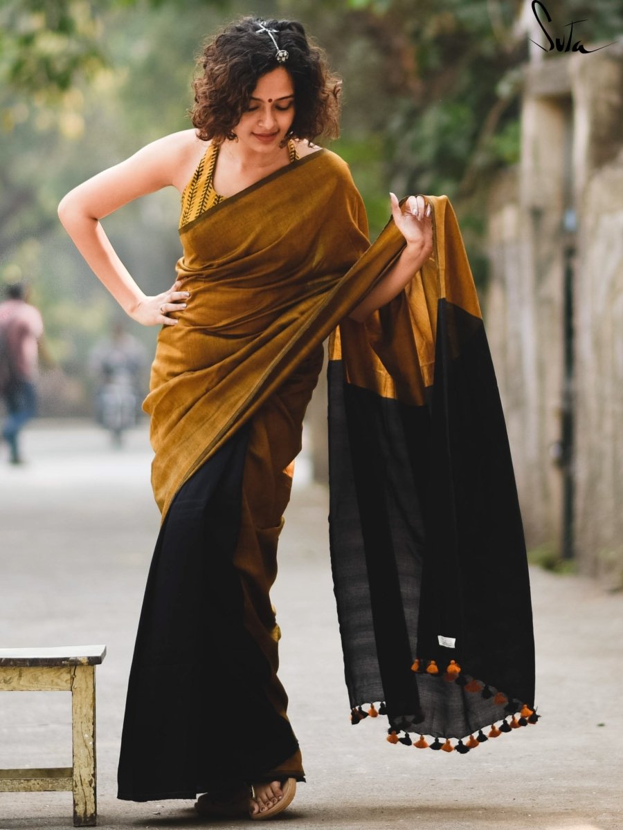 Cotton fabric dates back to some of the most ancient civilisations and it has a strong presence in the modern wardrobe as well. The softness and lightness of cotton combined with its strength and versatility makes it one of the most popular choices, especially for the Indian climate. We took this simple, elegant fabric and combined it with acrylic for that added sheen and voila! We love what we see and the saree falls so beautifully that it feels like second-skin!