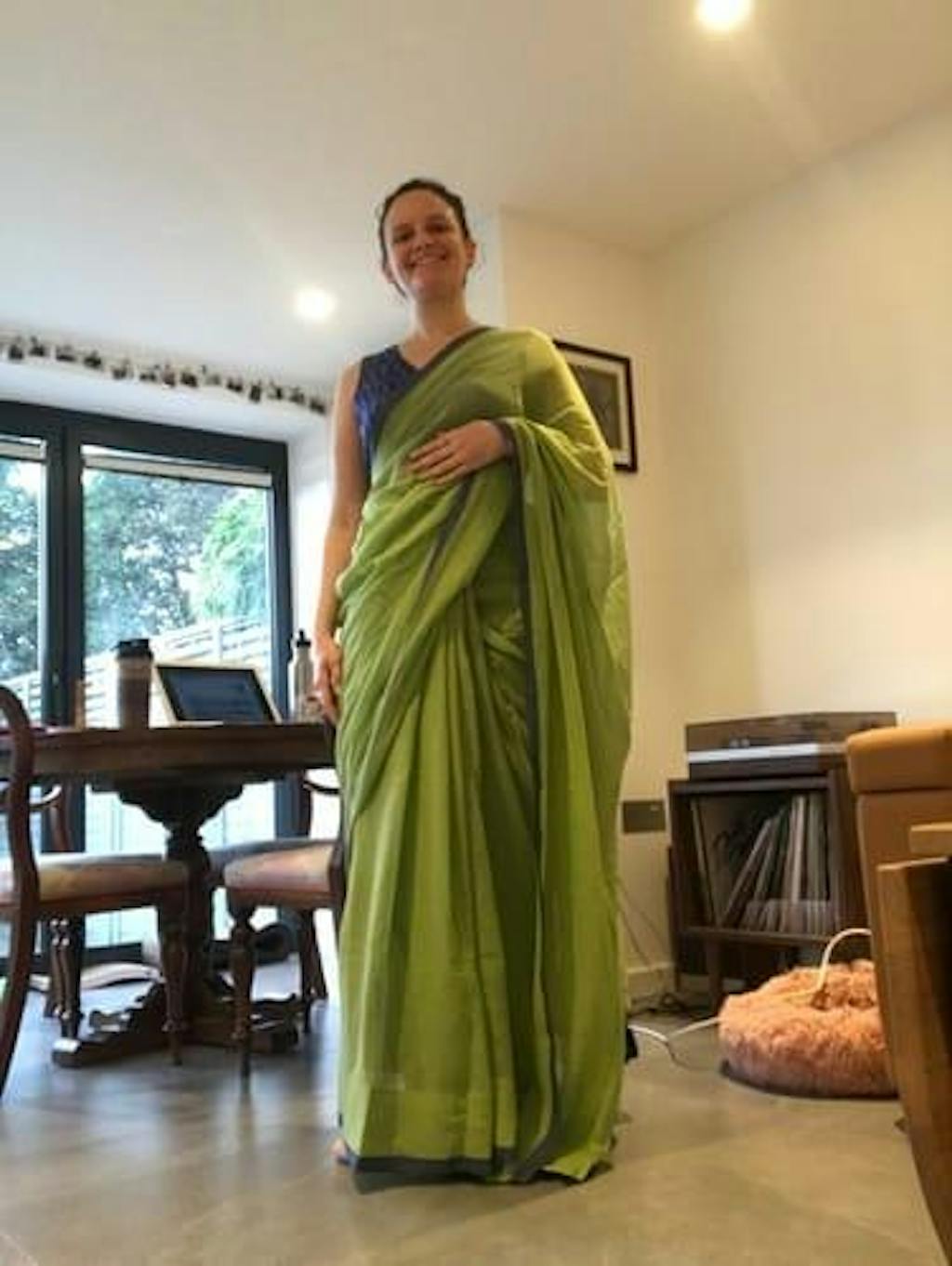 The breath of life is in the mellow sunlight washing over her. Some days the memories knock the breath out of her. To chase a feather, a pink butterfly with gossamer wings, her green pattu pavada wrapped around her legs that curtailed her running faster. Her pati had stitched it for her, and a month and a half of summer every year, she felt simply airborne. Whoever says great things dont come from comfort zones? That piece of Mul draped on her its irresistibility comes from the starlight and soaks her to the bones. Green is the colour she chooses to wear, the colour of nature. It is life, renewal, nature, energy. And envy too. I kind of know that bit, as I look at her! The colour green is not just a colour any longer. It is a symbol of ecology and a verb.And Mysore is a land of kings and valour and temples and rich weaves and her reminiscing¦