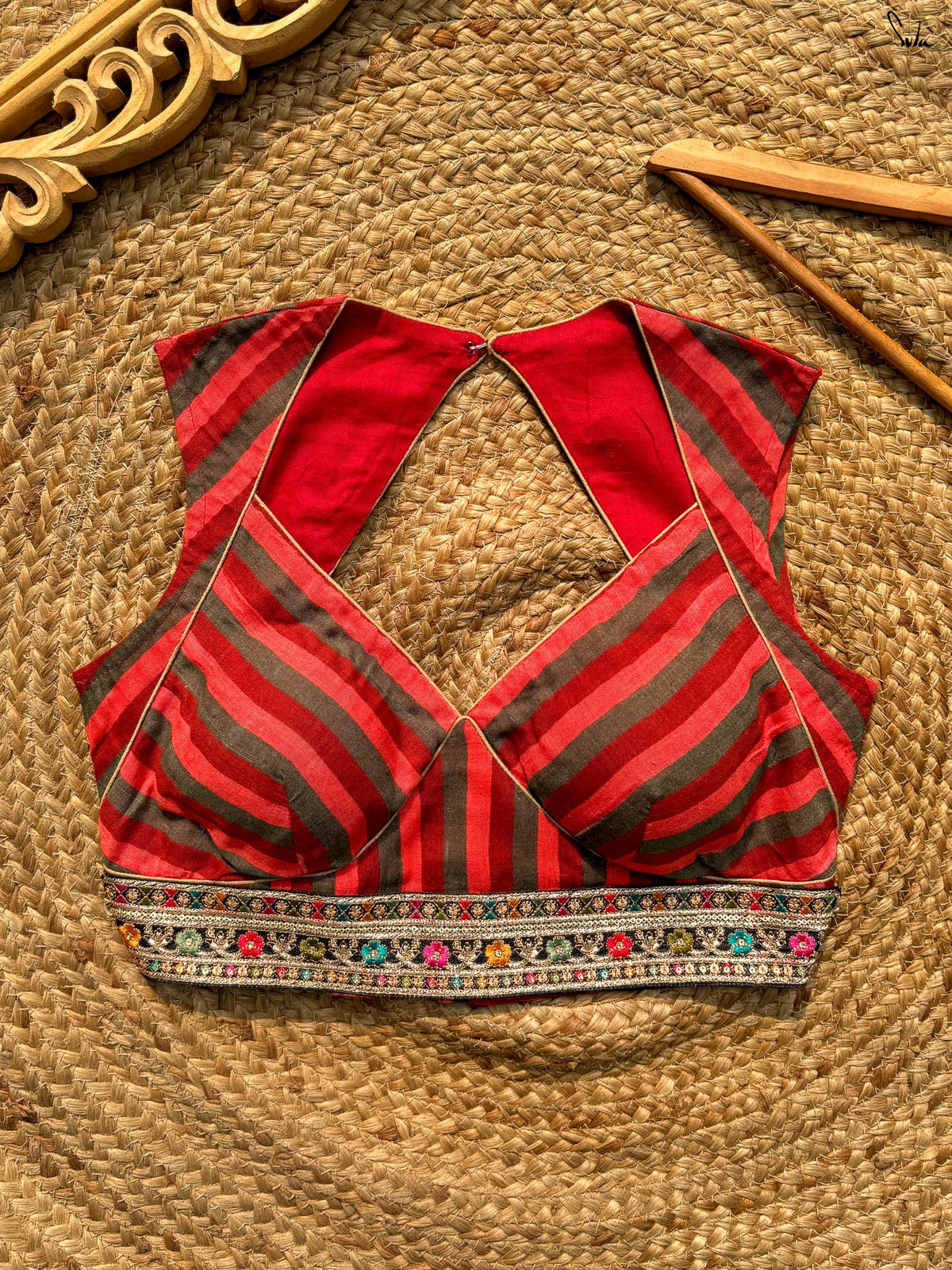 Multicolour Striped Cotton V Neck Padded Blouse