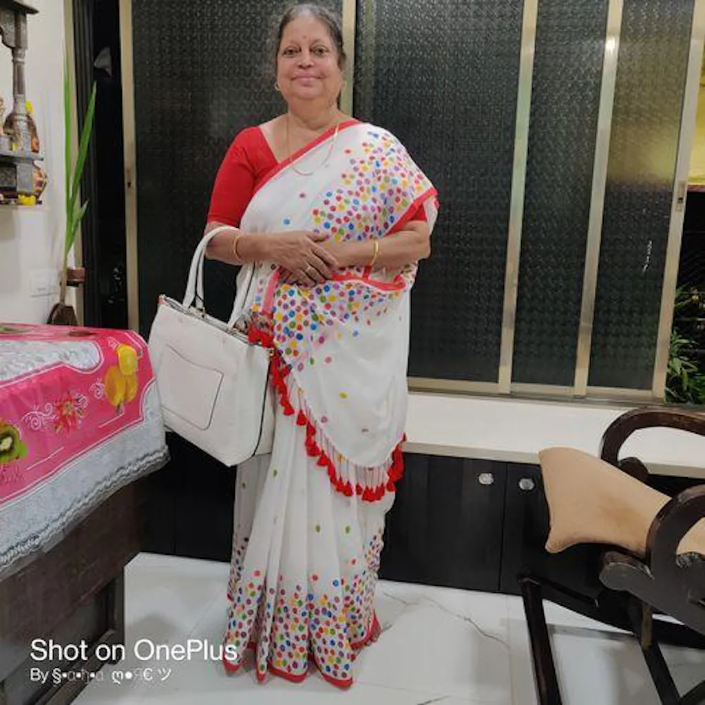 White Mulmul Cotton Hand Painted Polka Dots Saree with Tassels