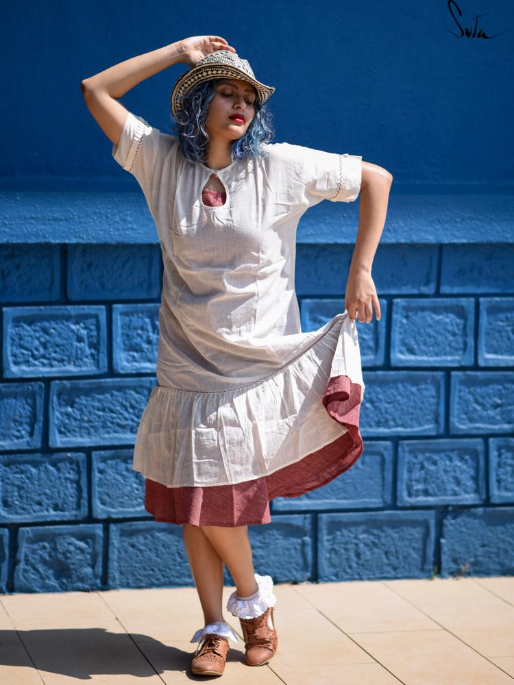 The Herringbone hand-embroidery on the overlay garment is done by a group of beautiful women artisans at Suta. This dress has an easy-fit that allows space for freedom of movement, breathability and flow. This can be styled separately as well as part of an ensemble.