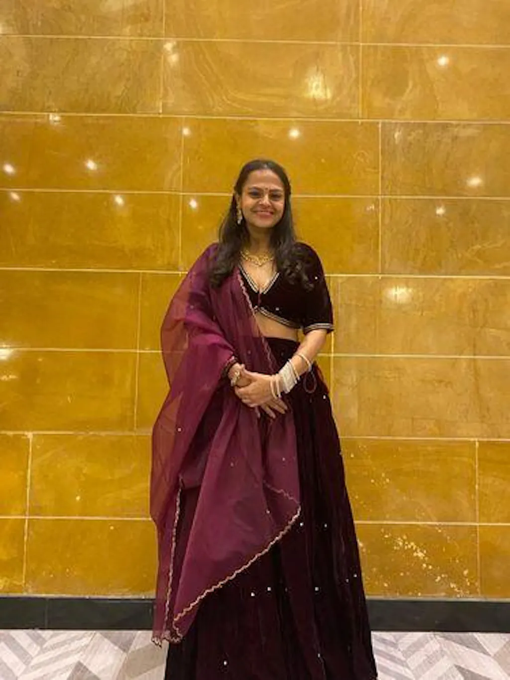 Wine Colour Velvet Sequin Lehenga Set