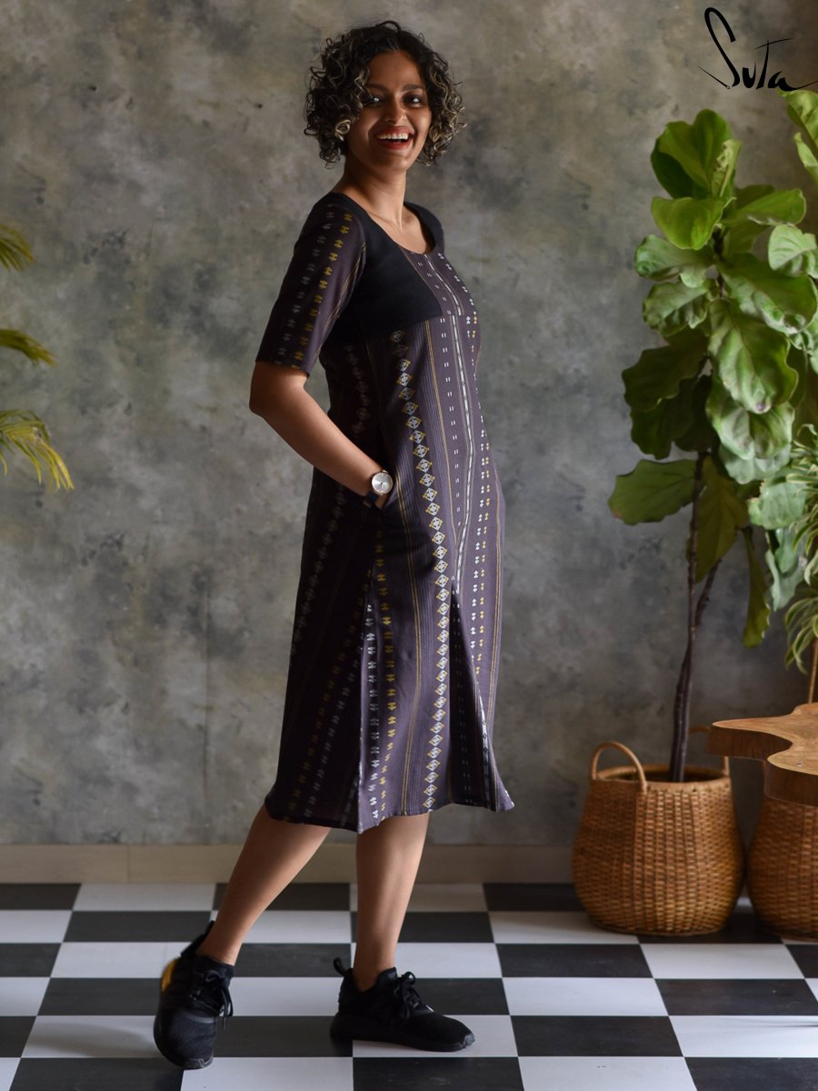 Black Cotton One Piece Designer Dress with Pockets