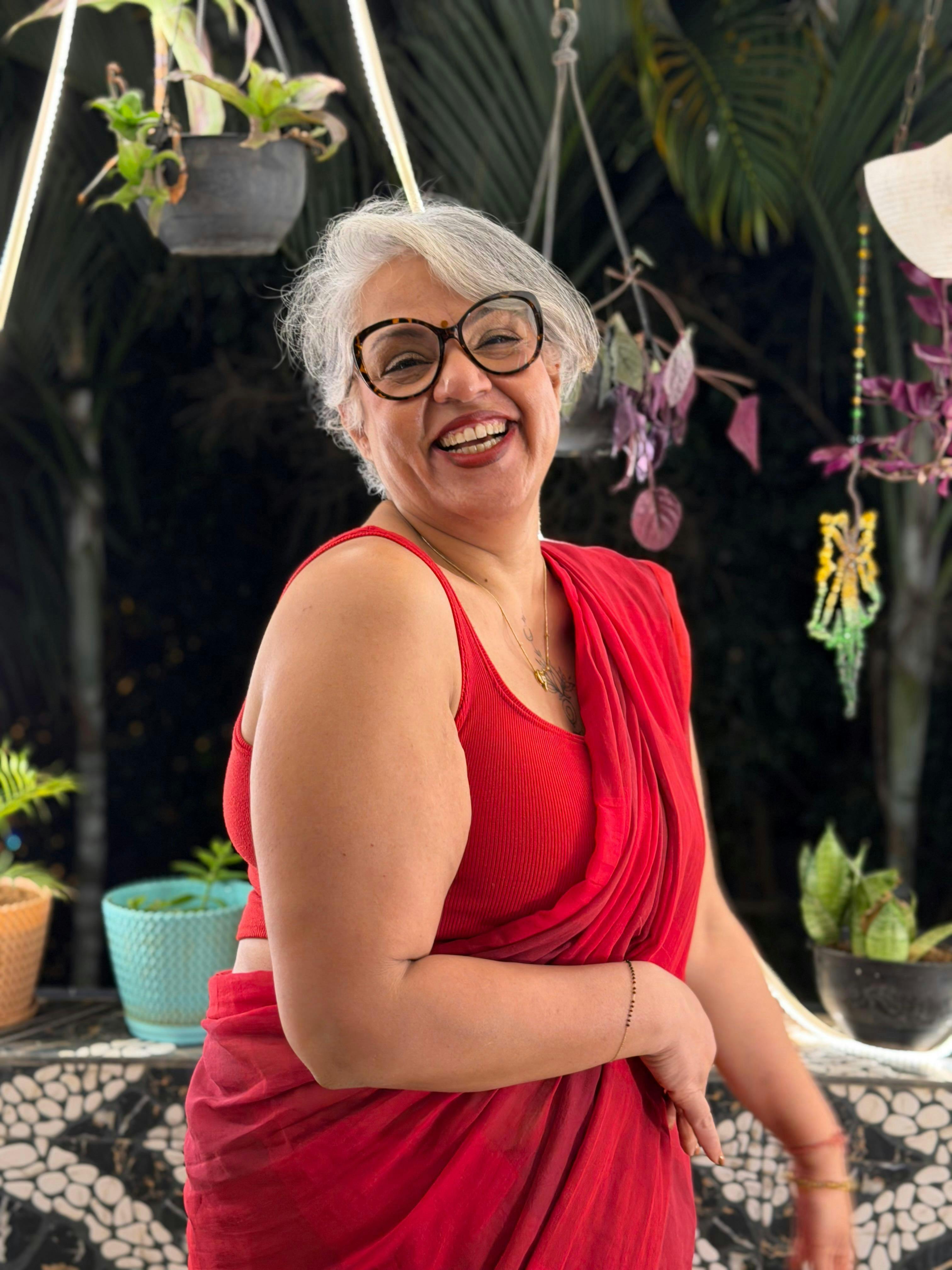 This red and maroon made-in-heaven mul saree is a heart-stealer!