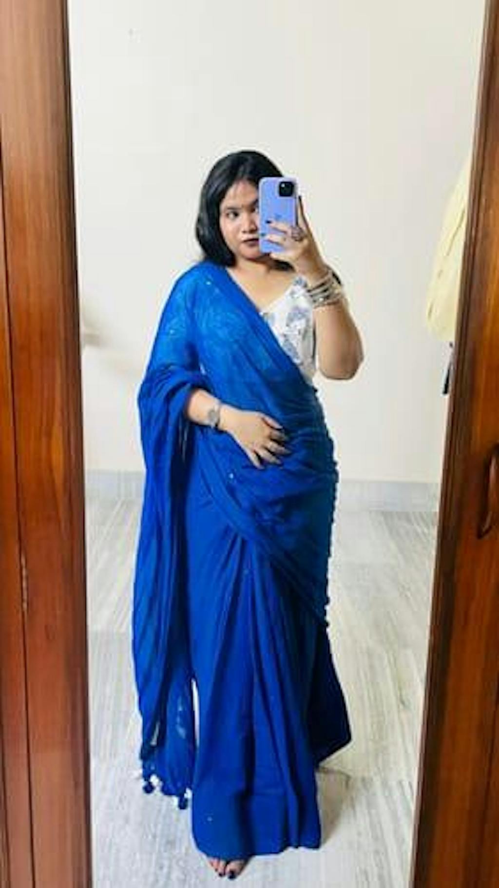 Pre-draped sarees are non-returnable and non-exchangeable.