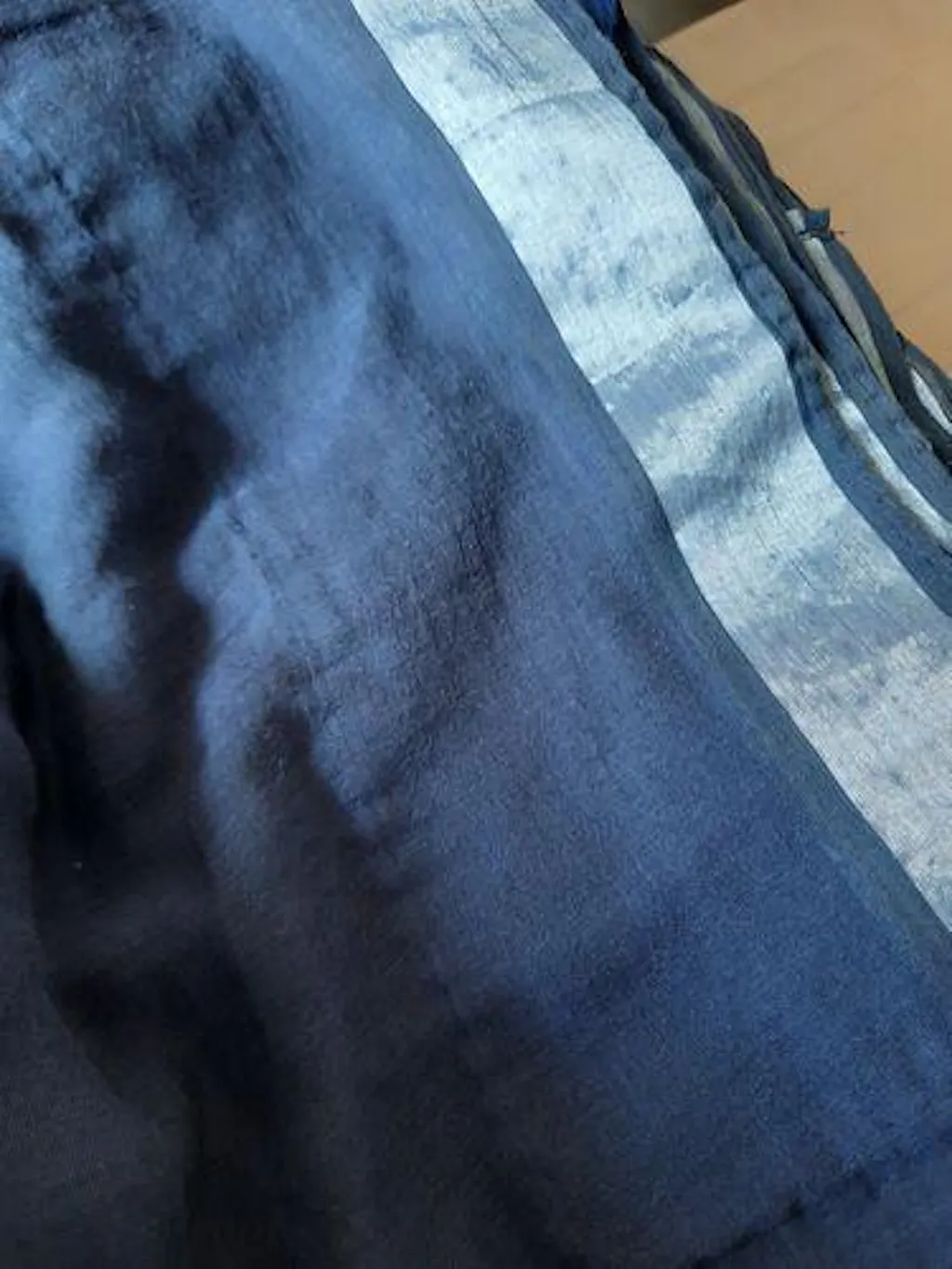 This is a blue handloom made-in-heaven mul cotton saree with zari in the border. And, it embraces all of you in its fluid, soft drape.