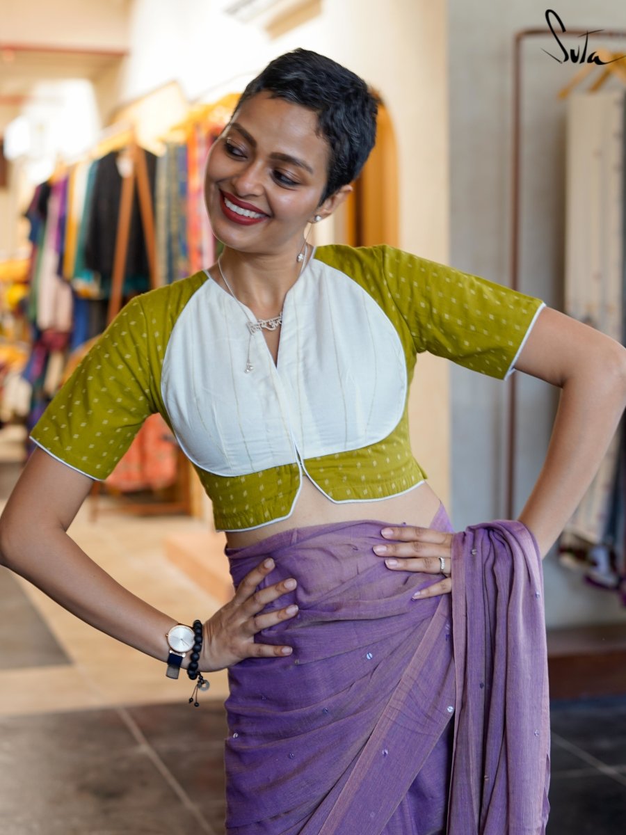 Embrace the grace within when you don this parrot green, cotton blouse.