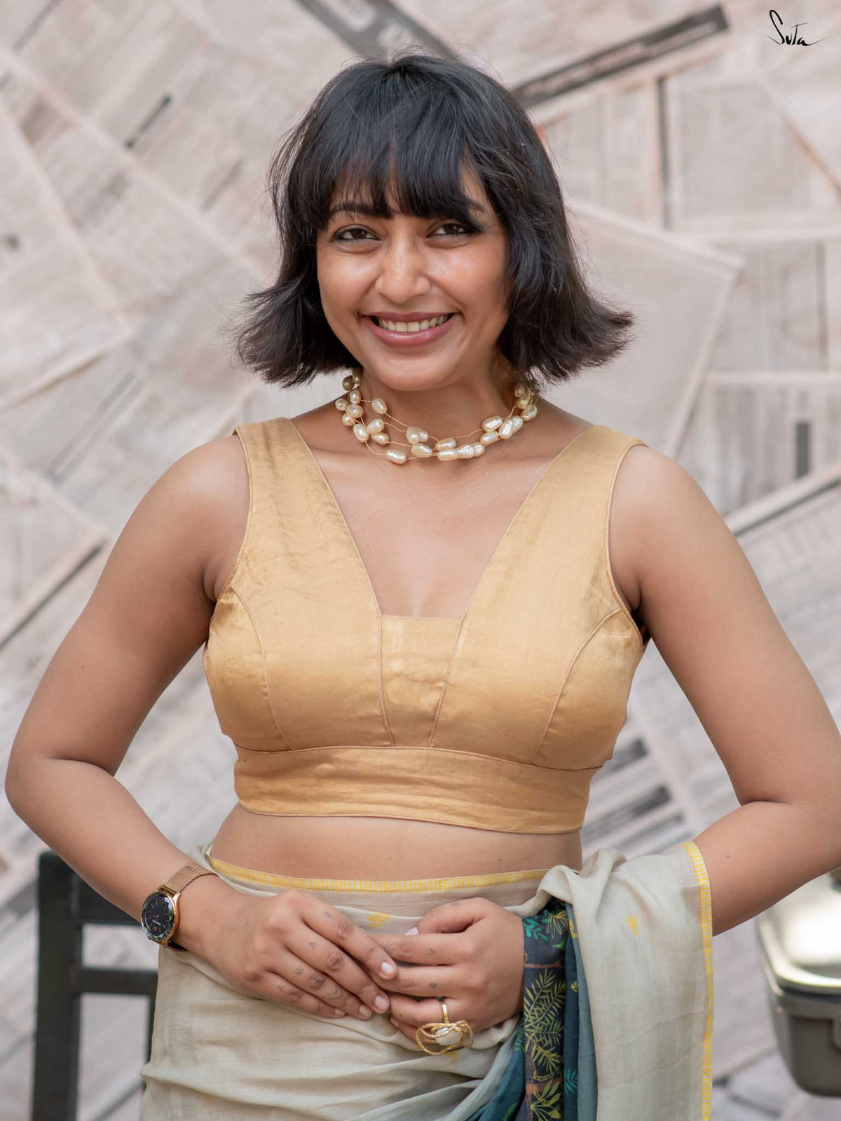 Gold Sleeveless Padded Cotton Blouse with V Neckline