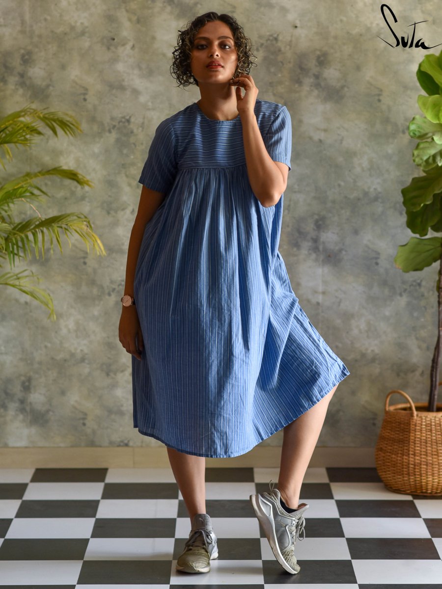 Sky Blue Cotton One Piece Dress with Round Neck