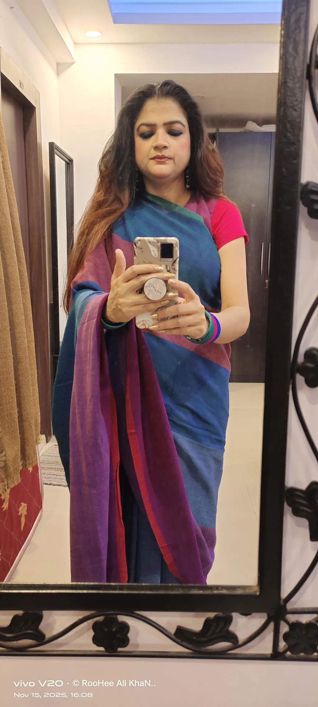 This beautiful saree in blue, pink and multicoloured hues is a must-have!