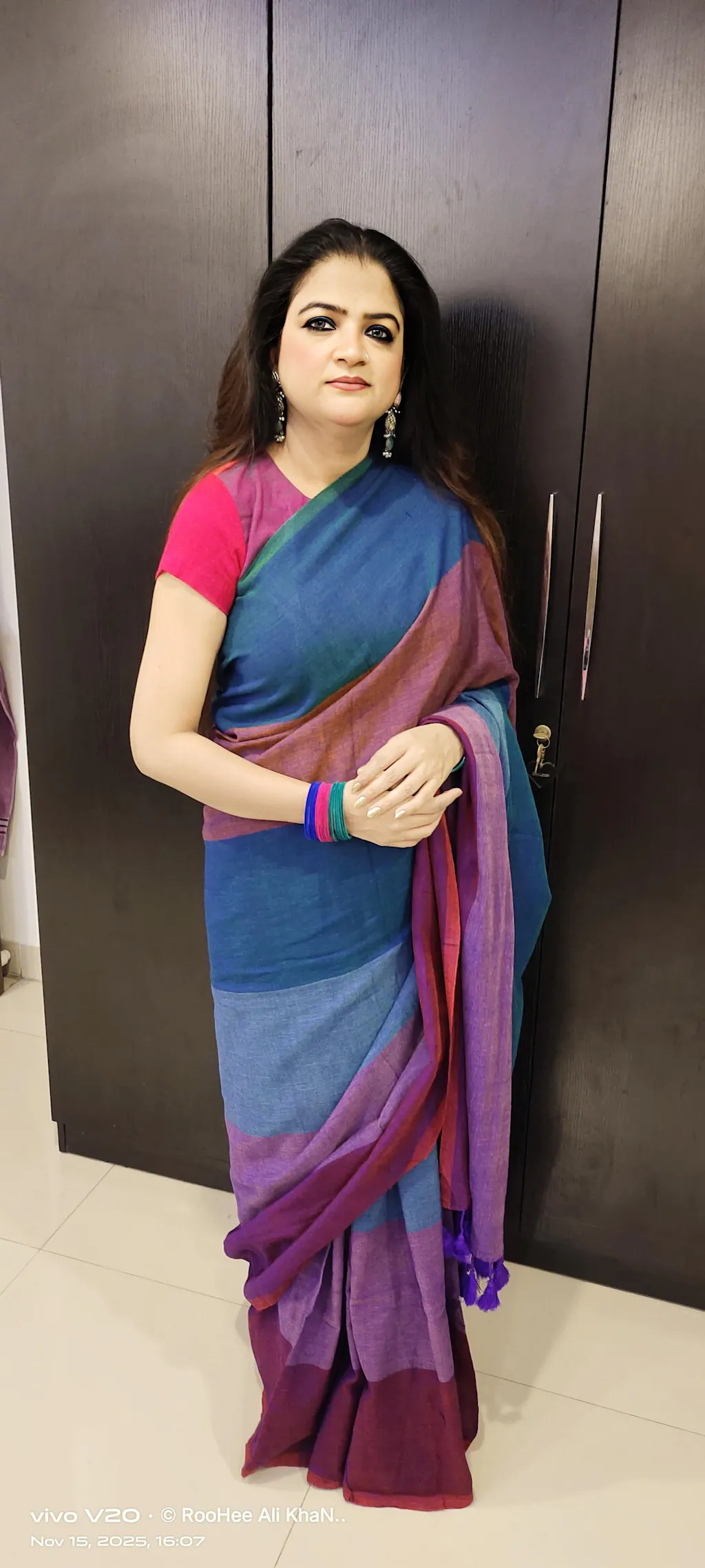 Multicolour Cotton Acrylic Saree with Blouse Piece