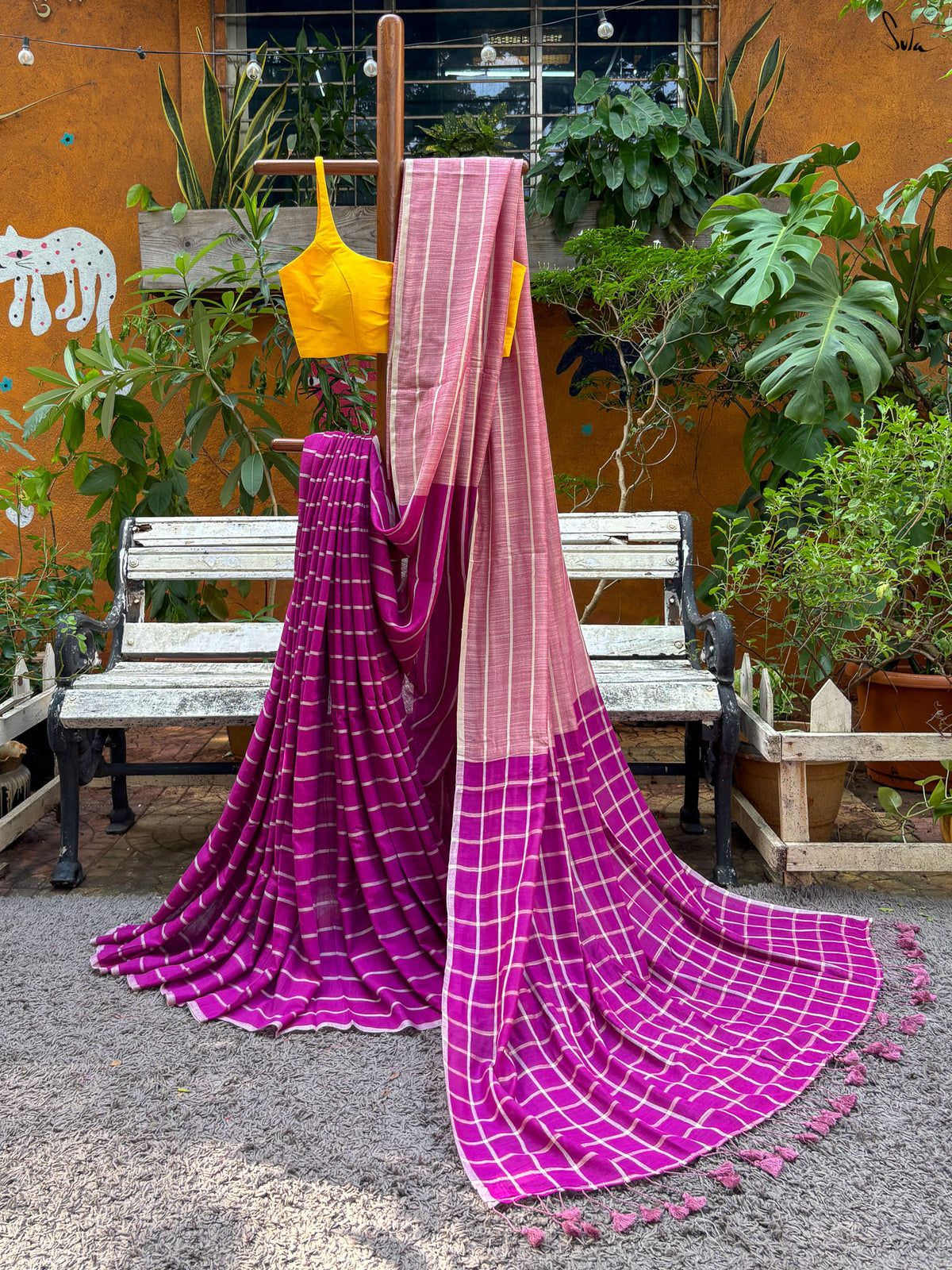 This saree brings the soft fluidity of mul and the unique textures of viscose slub together in a blend.The mul cotton is what we call ˜made in heaven at Suta. Known in some parts of India as mul mul, the fabric is buttery soft, flow and delicately beautiful. It is also very light and feels like second skin. With the right care, it becomes softer and softer with every wash and truly feels like a hug that wraps you in its love!Viscose is a biodegradable, sustainable fabric that is made using regenerated cellulose fibre. It is a man-made, manufactured fibre of cellulose origin that is produced using natural materials derived from wood pulp. The fabric is versatile, drapes beautifully, has an added sheen to it that lends a beautiful touch and the slub texture (slightly lumpy threads in places) makes it a delight to wear.