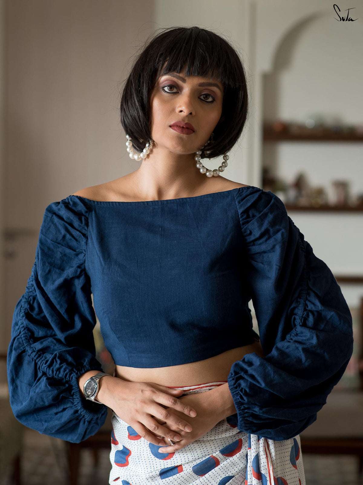 Su, the model is wearing size S blouse and a saree from from our inhouse collection