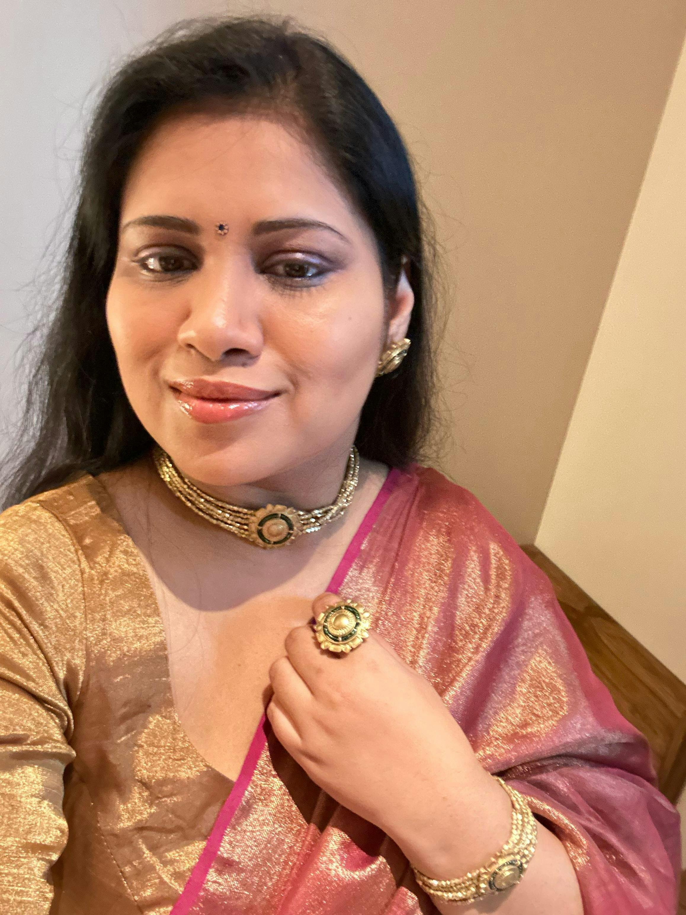 Her kohl-lined eyes are the kind, one would get lost in. They are alive and shine with a hint of stolen sunlight. She is most alluring, perhaps because shes not trying to be! Innocent demons inside her eyes recklessly play with matches “ have you seen sparks so pretty? She was born with wings. She was born to be real, not perfect. It hadnt been a perfect day. There had been a skirmish at her workplace and she had made a big deal about it. One is allowed to make a big deal about things that are important to you, she had said to herself. She felt like a little wild thing that was never sent to school.But life moves on and here she was “ a little disheveled, a tad flaw-some, but awesome regardless.Raag Asavari is a fundamental raga and she wears the pink-gold piece of drape as a rebel, that she fundamentally is.