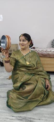 Green And Gold Linen Zari Saree With Blouse Piece