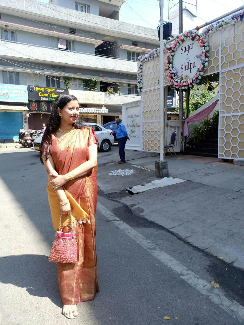 Raga Todi, a beautiful pink saree made from lightweight linen zari, features a contrasting gold pallu that adds sophistication. With built-in adjustable loops, a matching lining, and a small pocket, this saree offers ultimate comfort, ready to wear in under 30 seconds for any occasion.