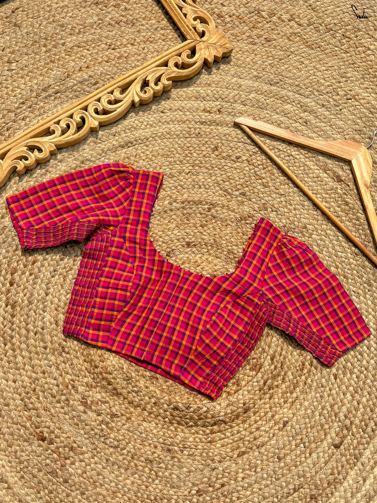 Red Cotton Blouse With U Neck And Front Hook