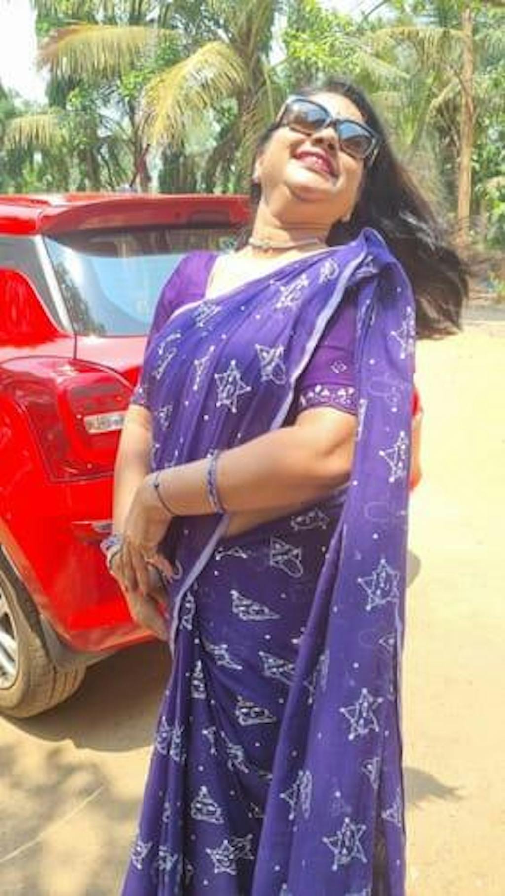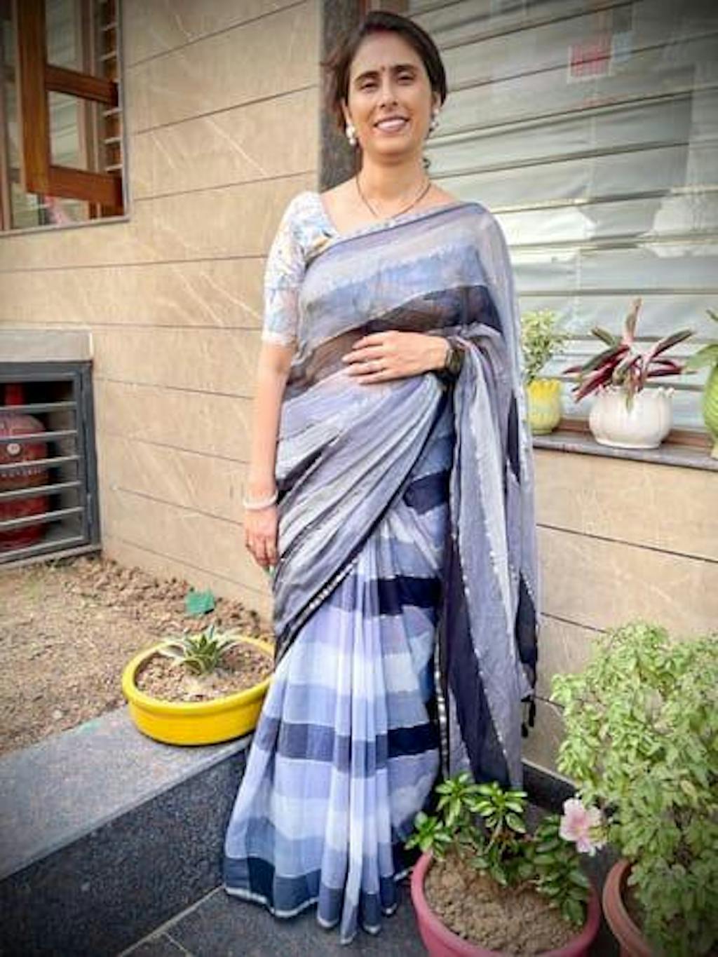 This is a made-in-heaven mul cotton, screen-printed saree.