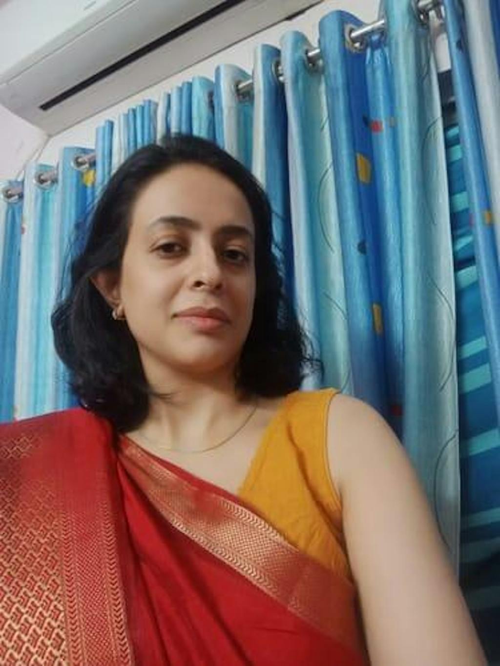 Blouse : The model is wearing size S blouse and the saree is Surajmukhi