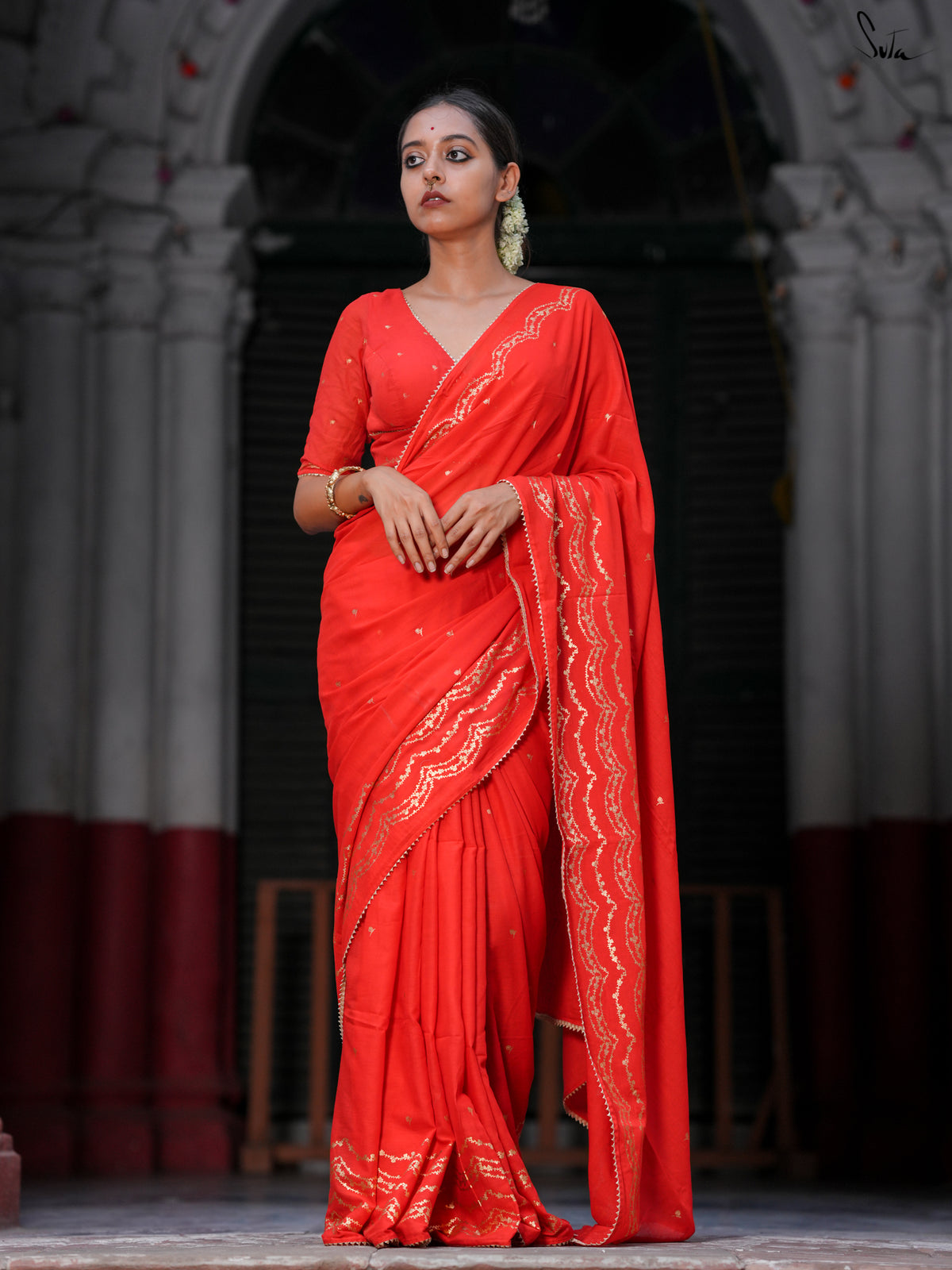 Pre-draped sarees are non-returnable and non-exchangeable.