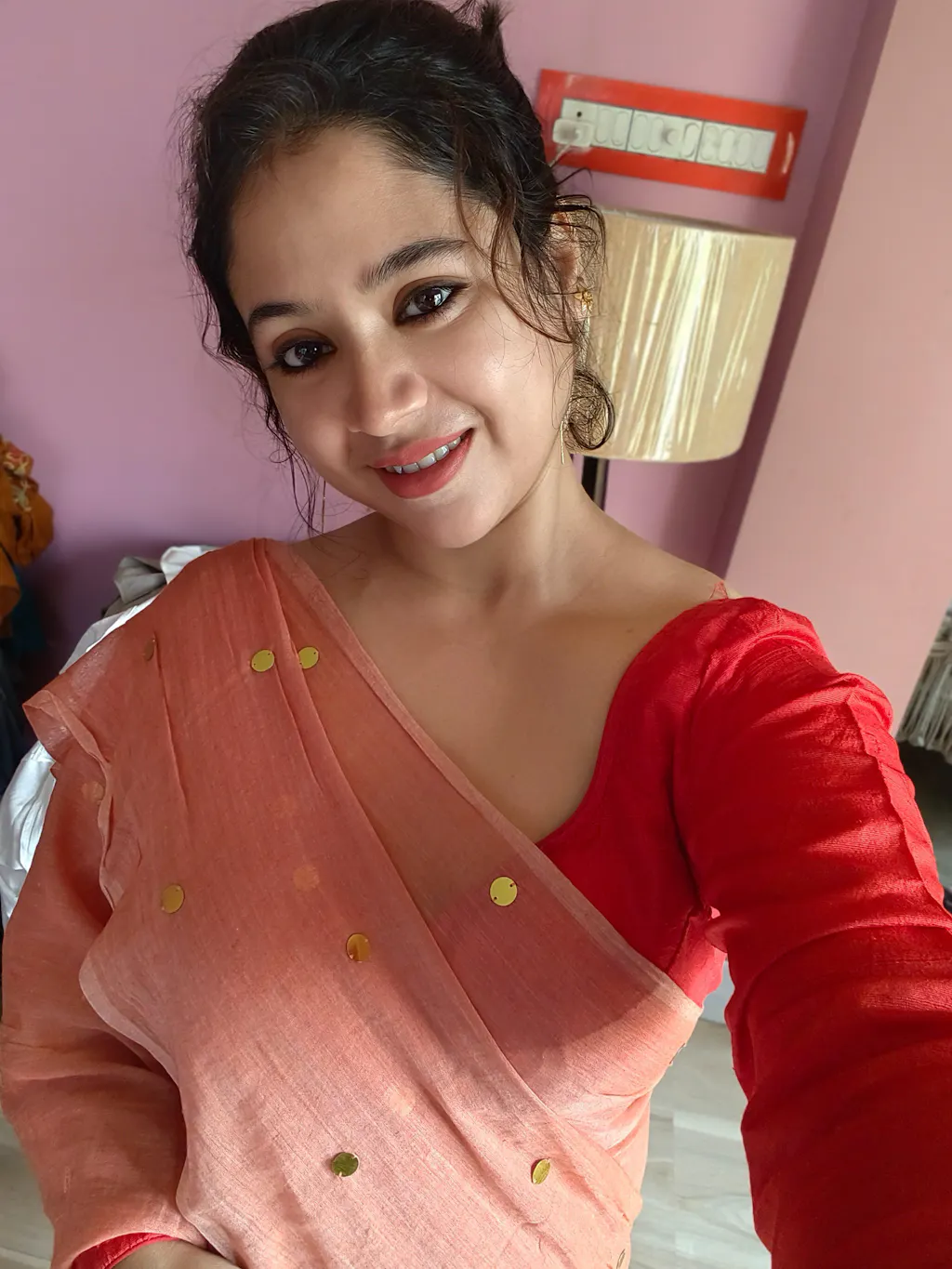 Orange Peach Mulmul Cotton Sequins Saree with Tassels
