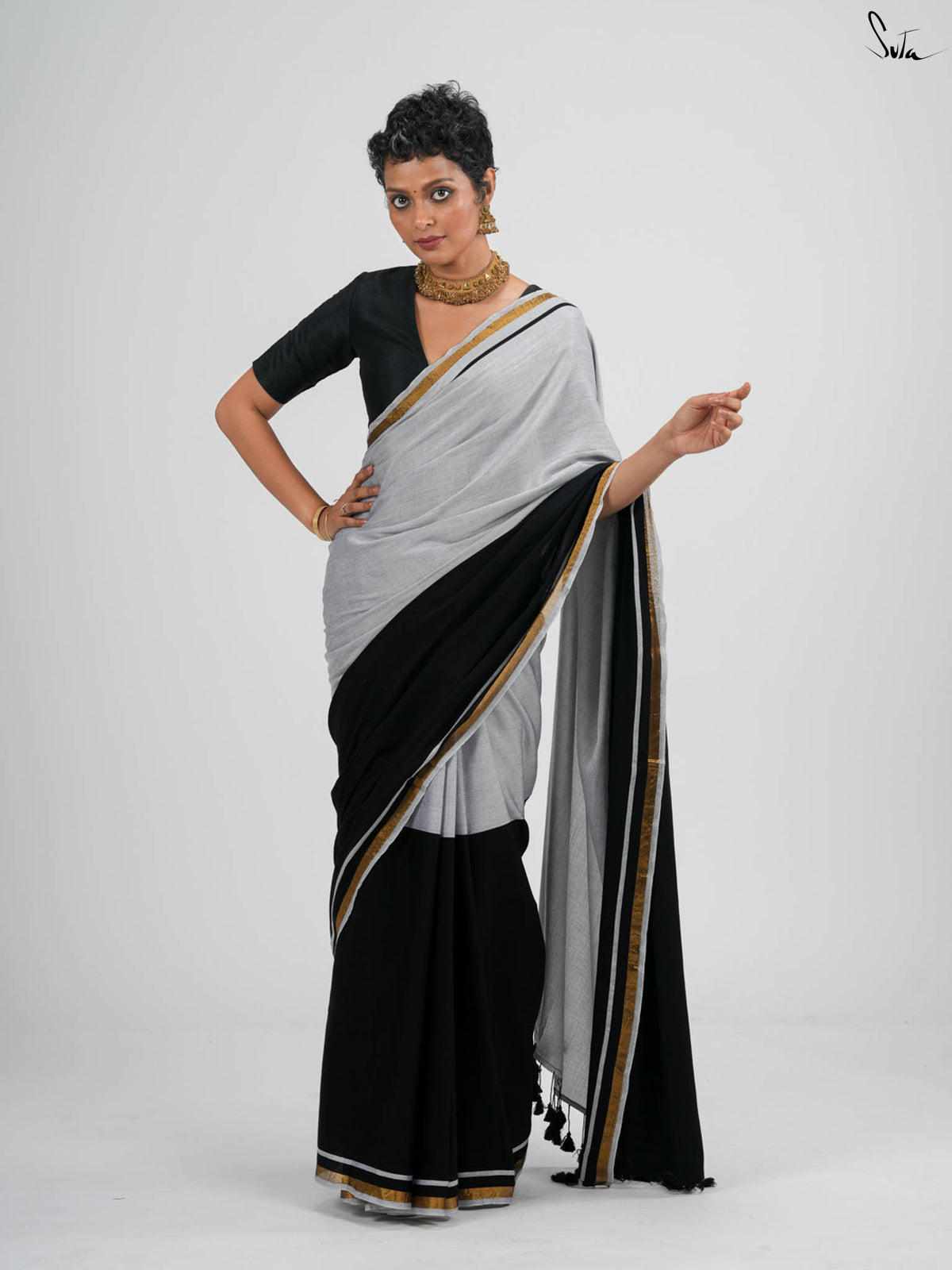 Double Trouble: Black/White Saree
