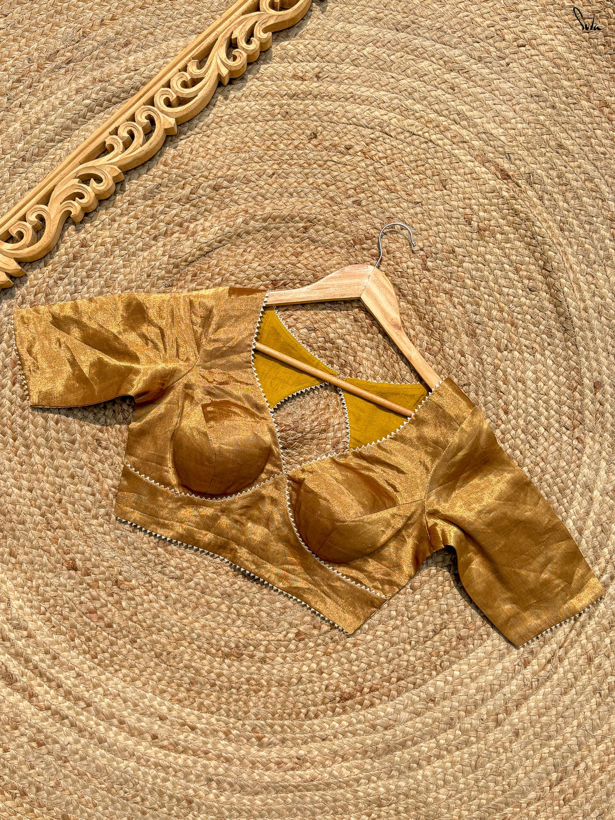 Gold Pure Silk Blouse With Dome Neck And Back Hook