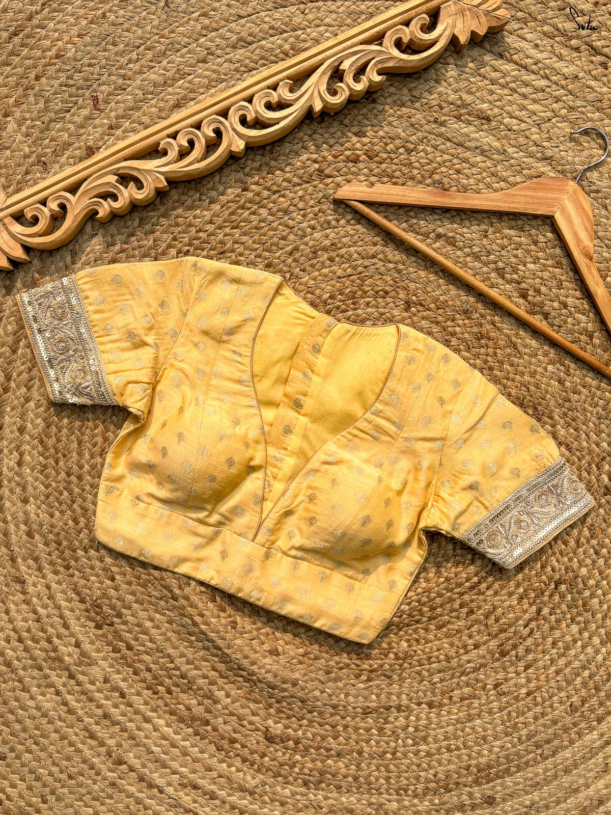 Gold Silk Blouse With V Neck And Back Hook