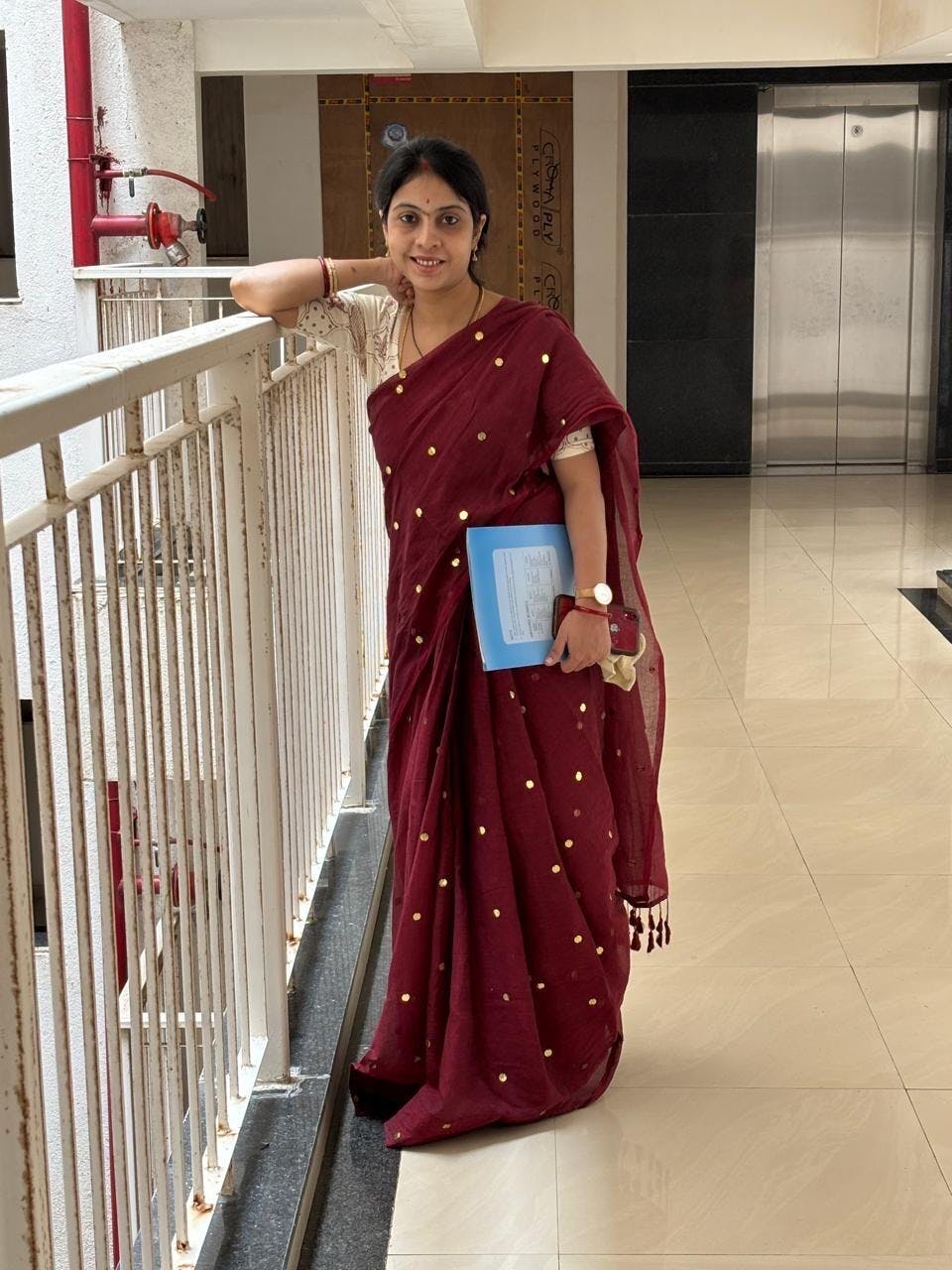 This made-in-heaven mul saree in maroon with glitters is irresistible!