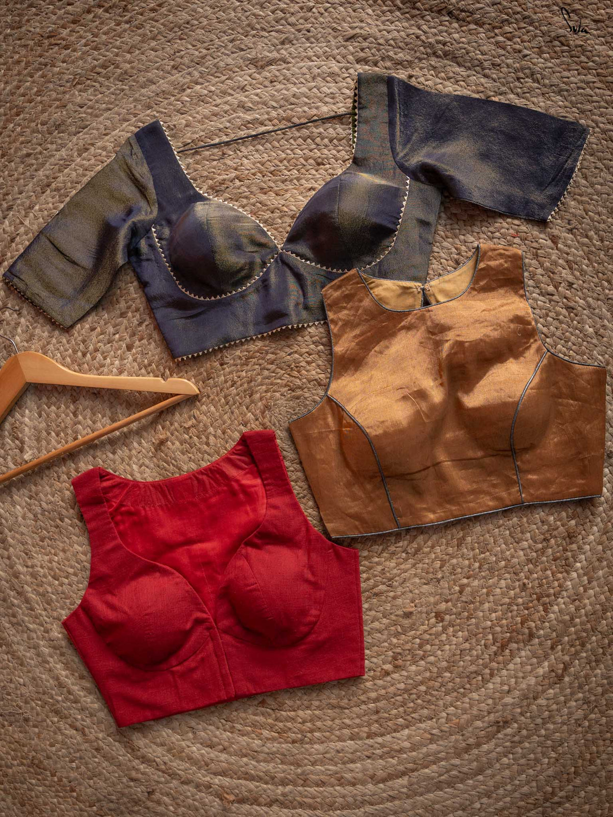 Strength and comfort, all in one! Tiruthi gives you three blouses made from cotton, chanderi, and viscose zari. This combo is all about making you feel confident and comfortable, whether you’re dressing up for an event or just hanging out.