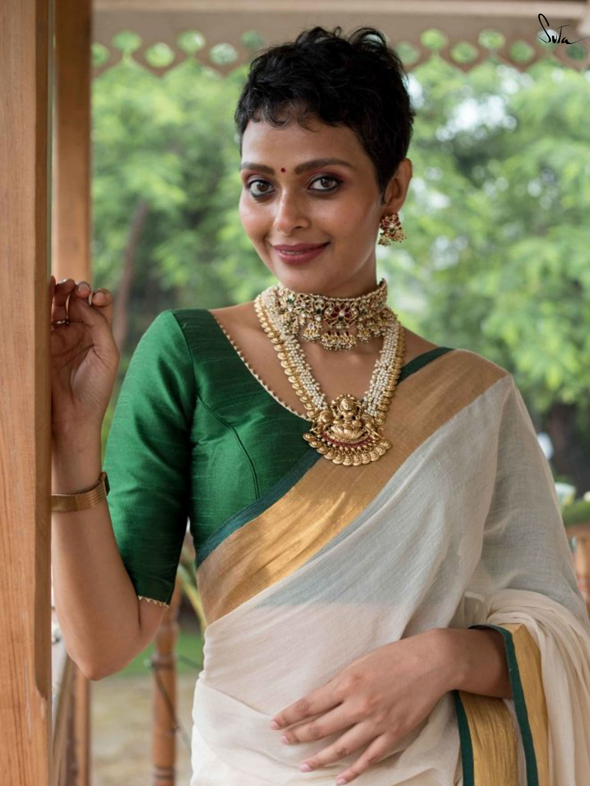 Blouse : Su, The model is wearing size S blouse and the saree is Aavani