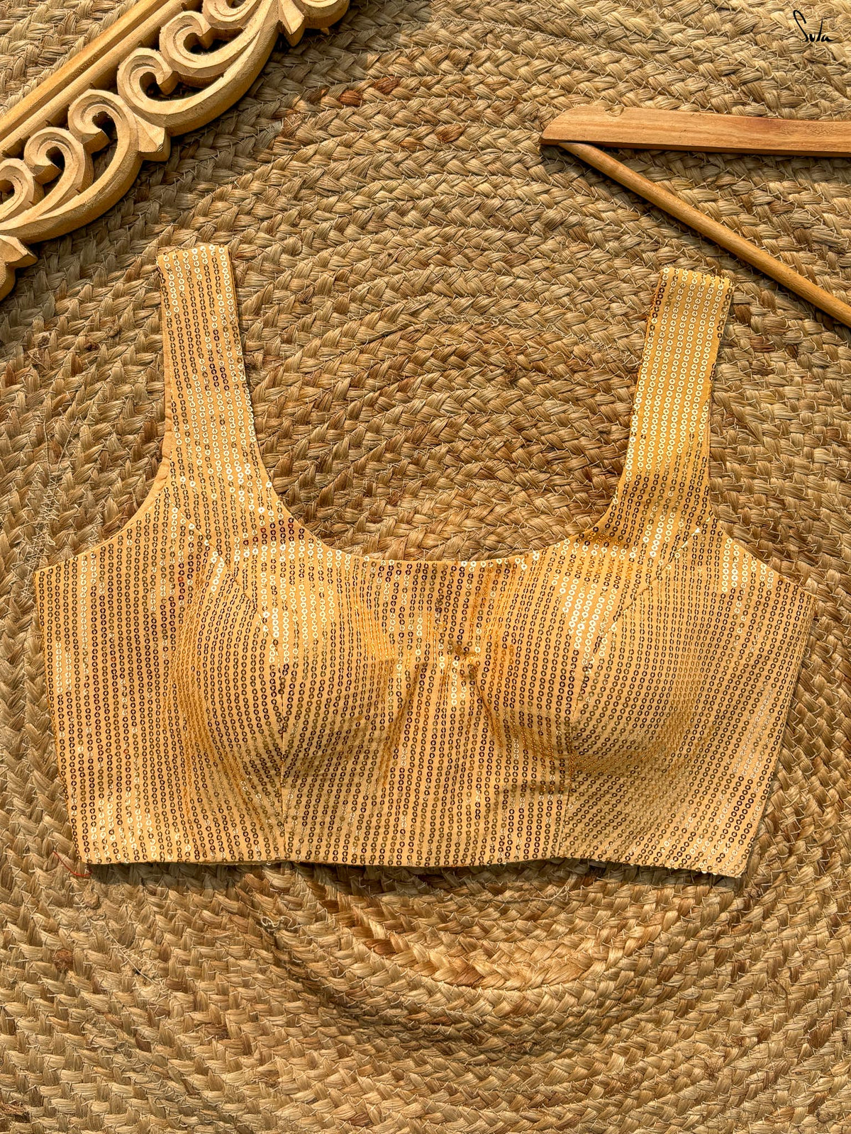 Gold Polyester Blouse With U Neck And Back Hook