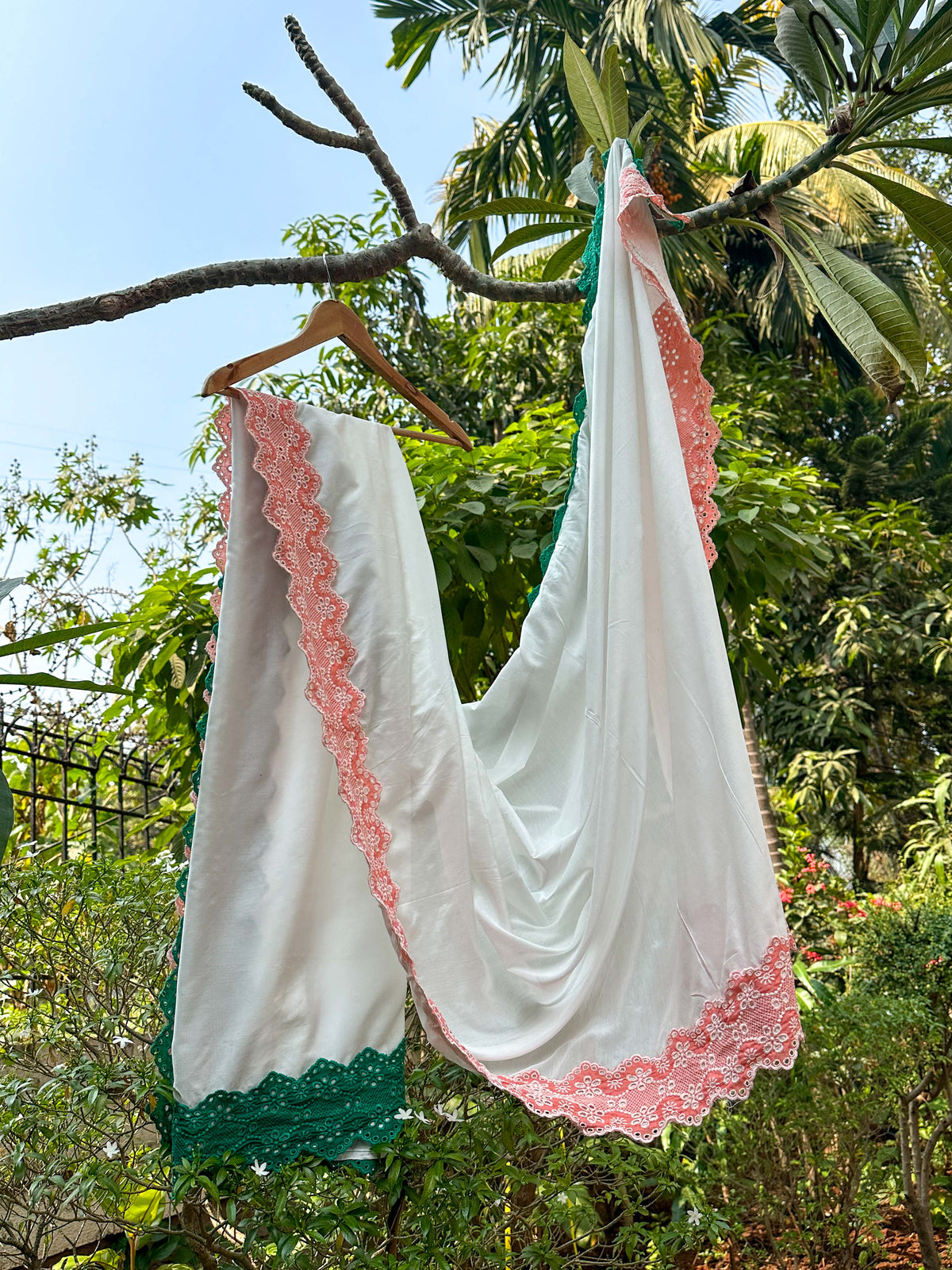 Inspired by the Indian tricolour. Crafted to reflect contemporary sensibilities. This understated but undeniably beautiful cotton-based dupatta is the perfect accent to your kurta sets.