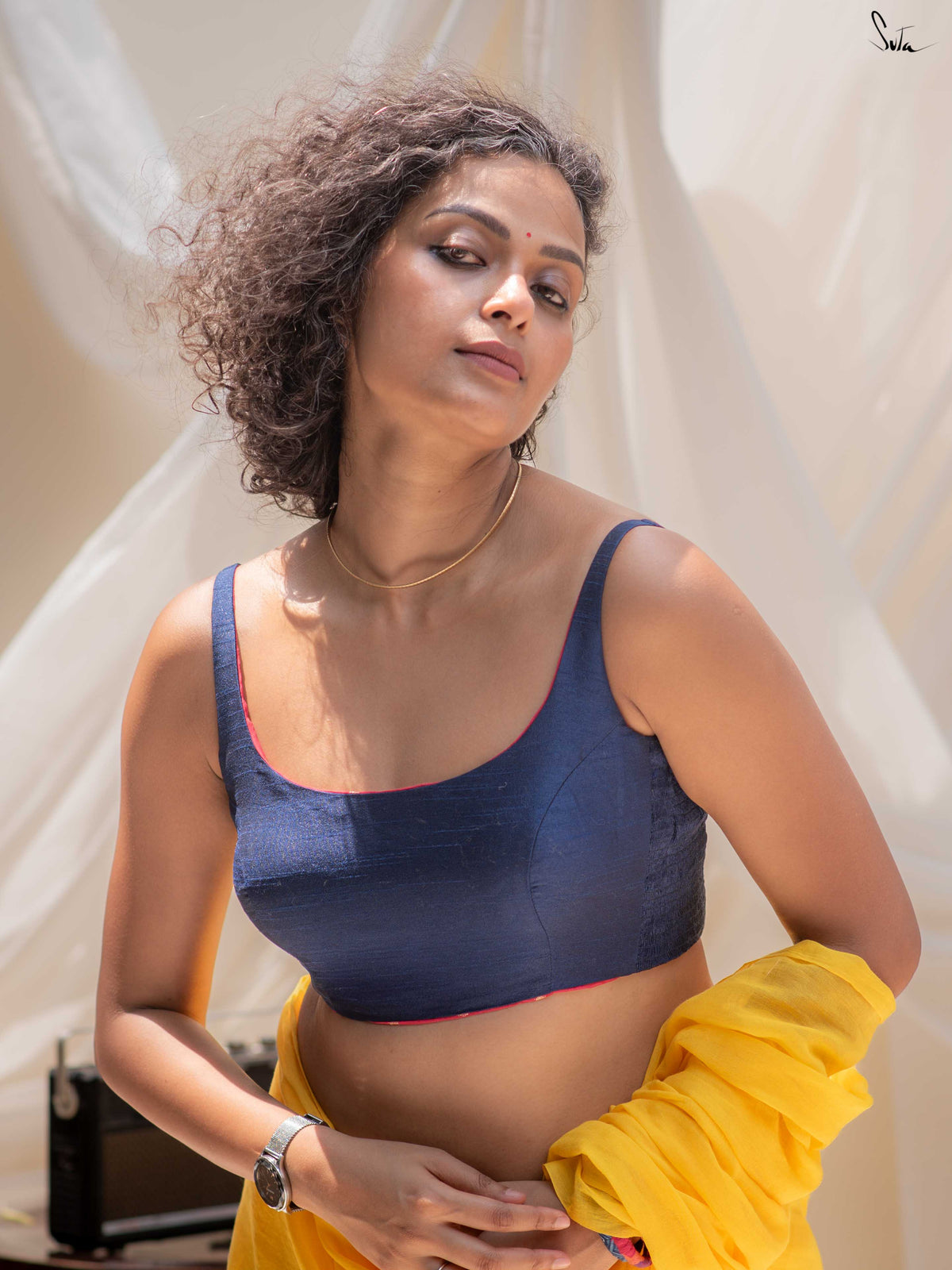 The model is wearing size XS blouse and the saree called Butterfly Yellow