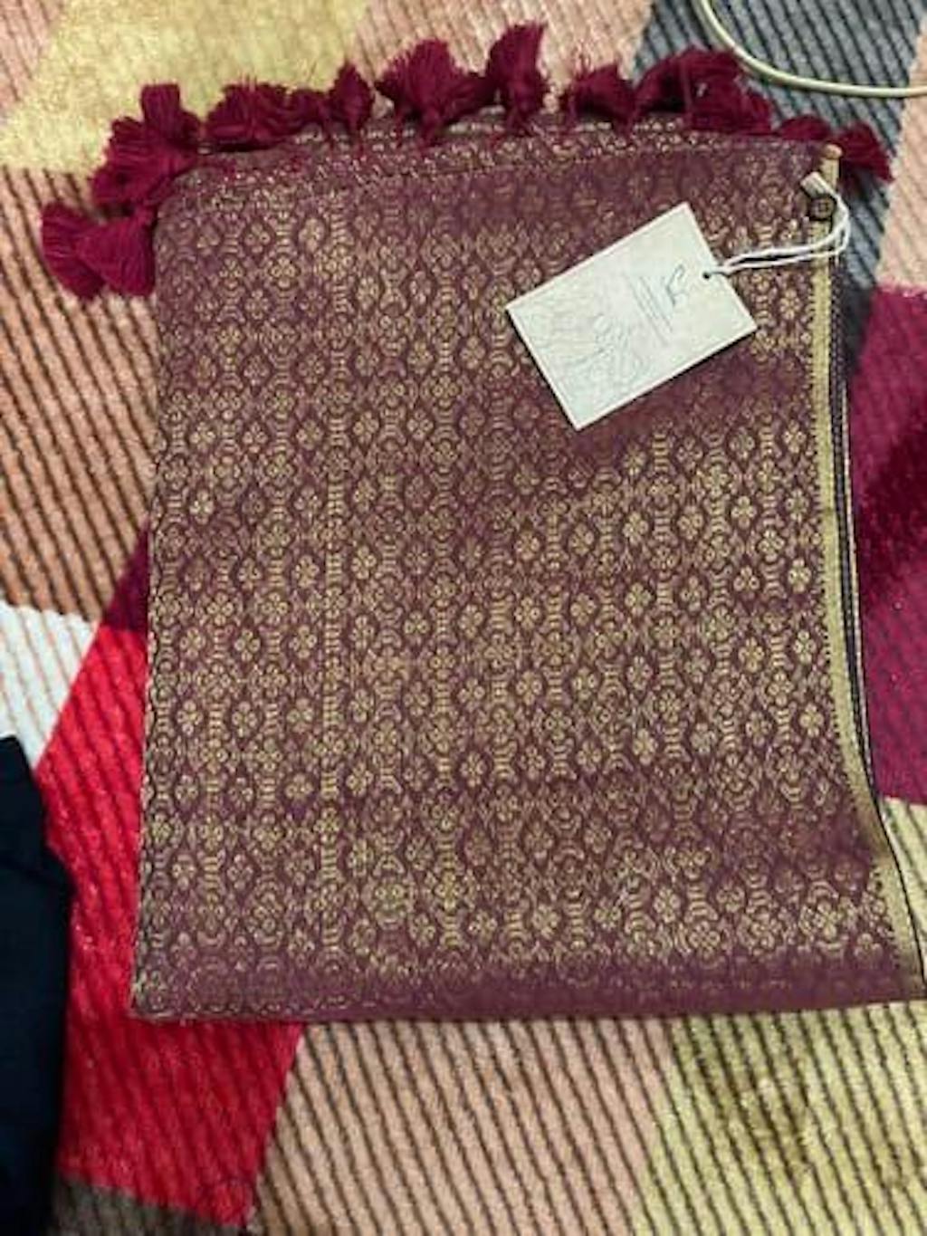 Maroon Handloom Cotton Zari Saree with Tassels