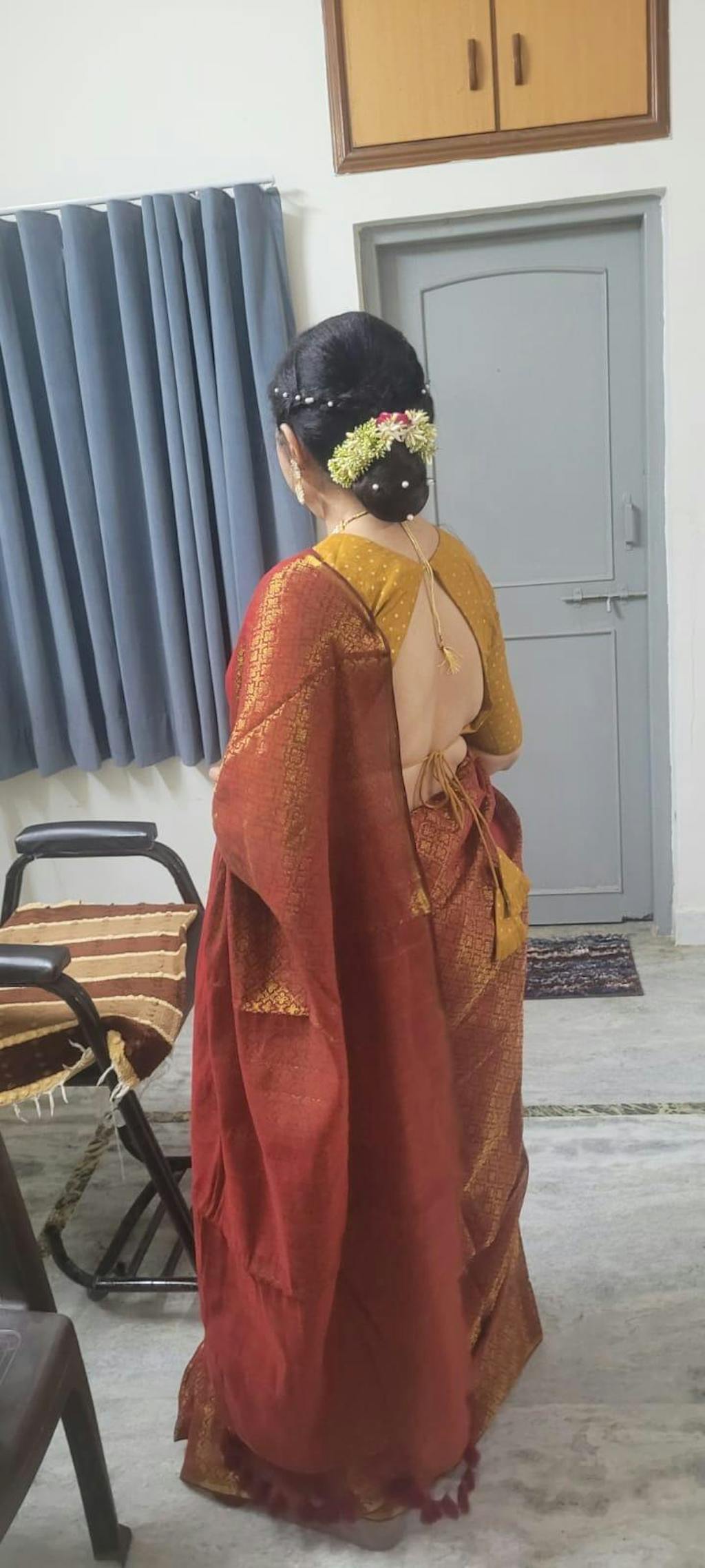 Pre-draped sarees are non-returnable and non-exchangeable.