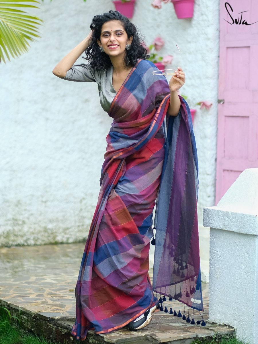 Be the light of your life and may the paths you take be illuminated with foresight and abundance, when you wear this multi-coloured mul cotton saree.