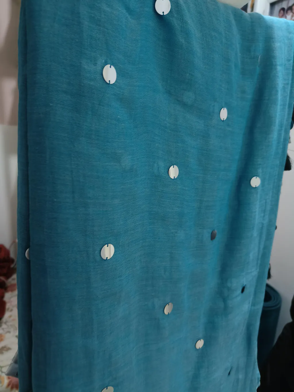 Mulmul Cotton Sky Blue Saree with Sequins and Tassels